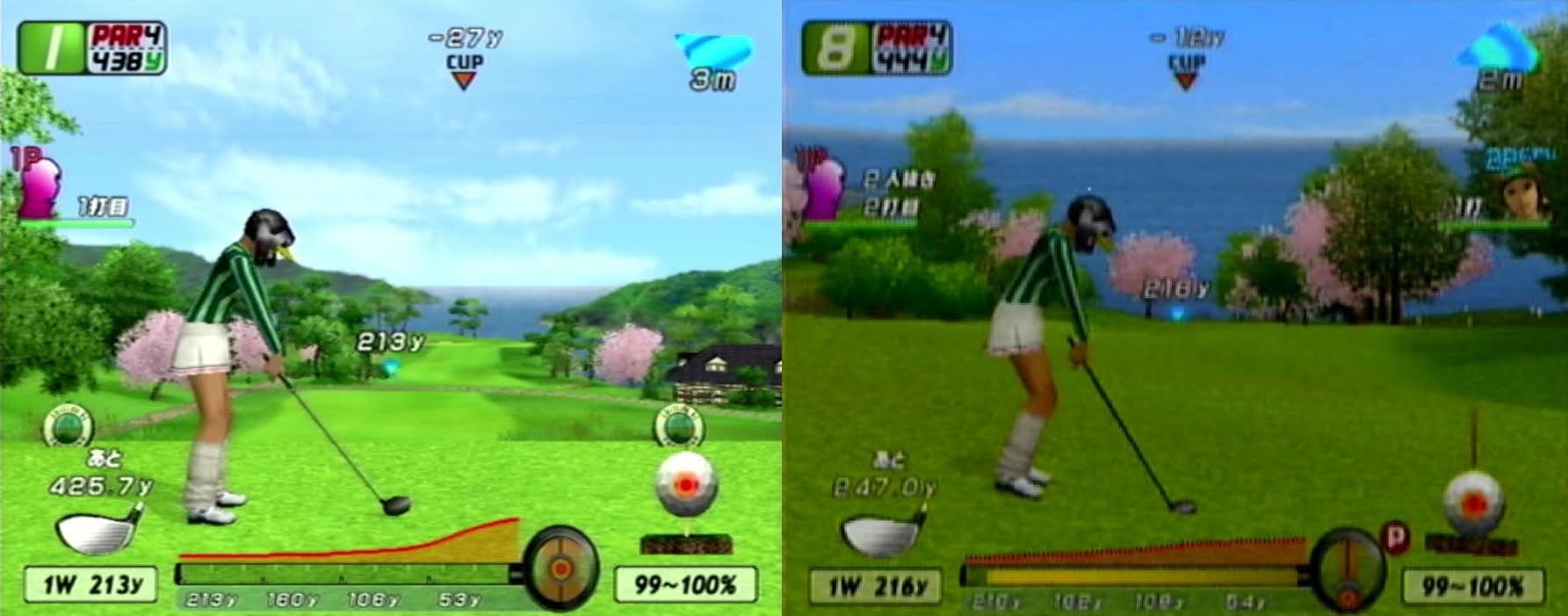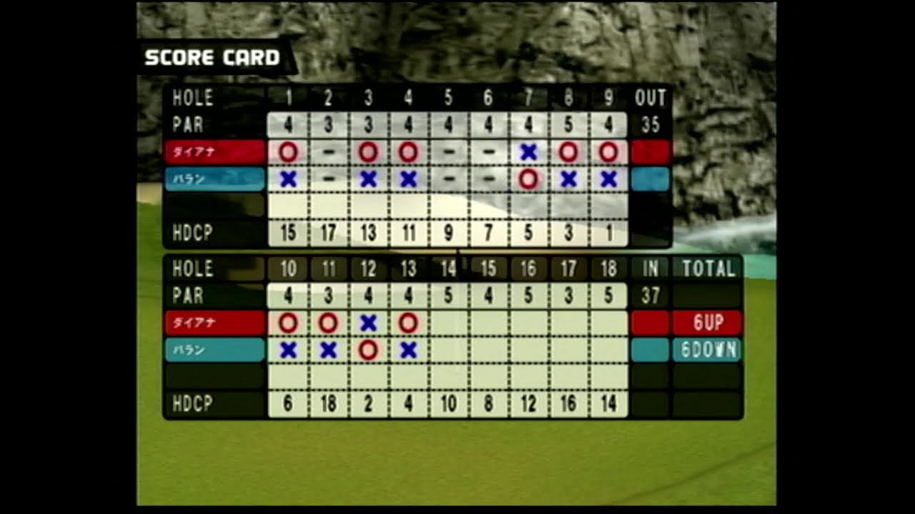 その結果が、以下の写真だ。同じコースだけどホール違い。女子の名前はダイアナ。PS2版における、私のメインアバターなのだった。PC版はローランド。