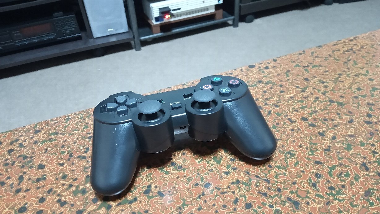 でもSONYの純正品、つまり有線式のゲームパッドがちょっと不満でした。それでこれを無線式にすることはできないのかと思い、AliExpressであれこれ探したら、1200円くらいでPS2対応版の無線式ゲームパッドが売っていたので、さっそく注文して手に入れました(おととい届きました)。