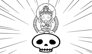 でもつらつらと自分の撮った写真を眺めていたら、どくろのさらに上部は、どこか袈裟を身に着けた観音様のように見えてきて、自分のなかで、以下の絵のようなイメージが沸き起こりました。