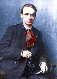 さて、以下のルドルフ・シュタイナーの写真は、ネットで拾った白黒写真を『CODIJY Colorizer Pro 4』で手動で着色して作ったものだ。その下のものは、それをWindows10の「フォト」の「フィルター機能」を使ってブルー系に変えたものだ。ほんと印象変わるよね。