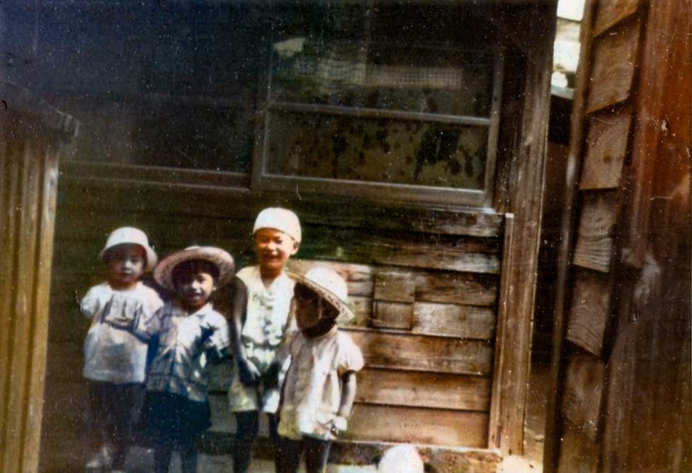 「なんだ、左から二番目の麦わら帽子は自分じゃないか、で、一番右は弟。左端の女の子は道路向かいの近所の〇〇ちゃんで、右隣の背の高い少年は……誰?」と感動した一枚である。