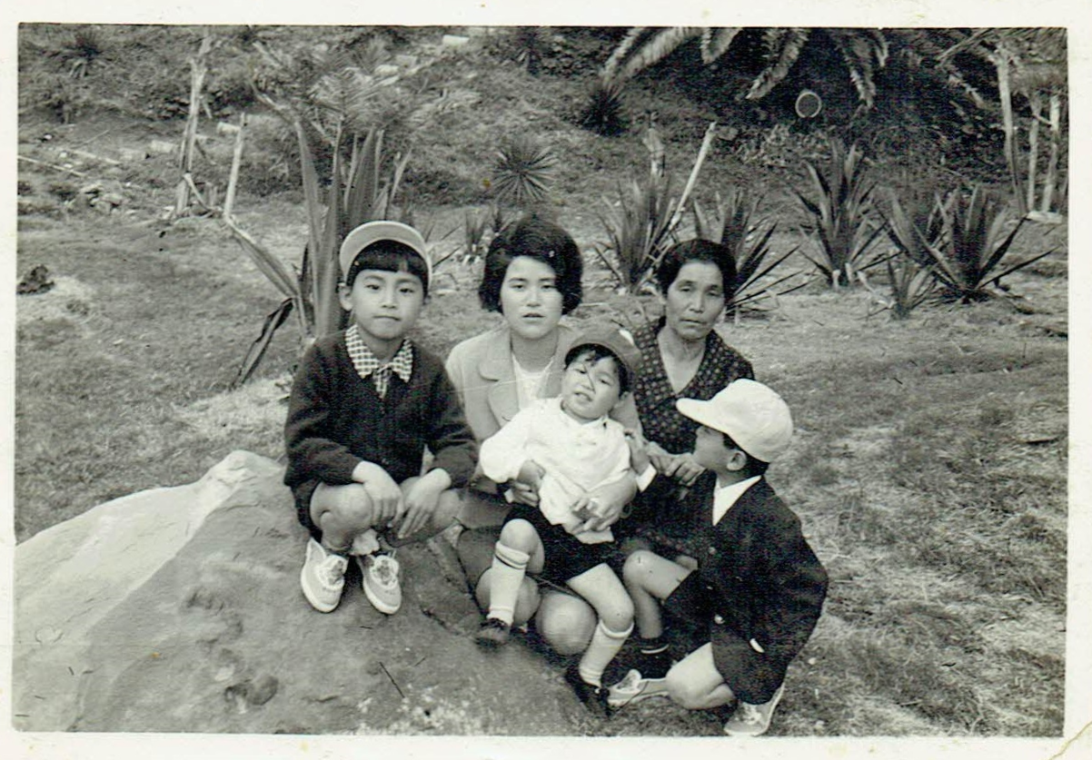 左から、私、母、三男、祖母(母方)、次男である。場所は日南のサボテン公園である。