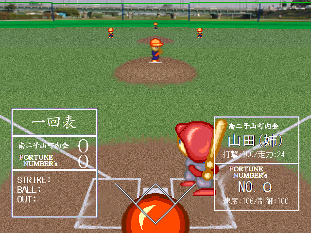 南二子山町内会チームの山田投手はチームデータ一覧に(姉)と書かれていたし、また二頭身キャラの姿も他のチームの投手たちとは異なったデフォルメが施されているので、明確に女性と判断できます。