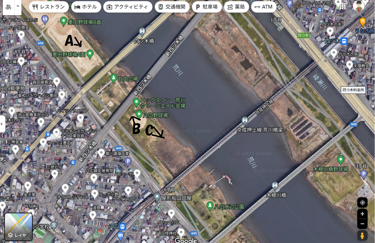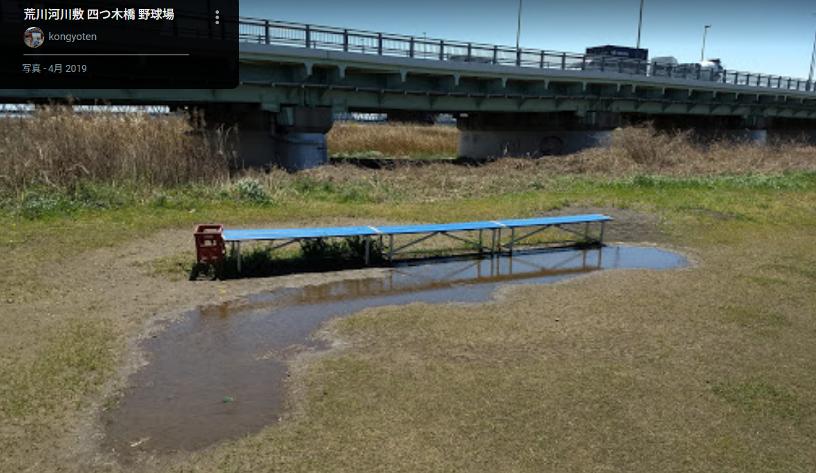 このような河川敷の野球場は東京にある、と仮定しました。そして多摩川か荒川か江戸川のどれかに付属する野球場だろうと思って調べ始めましたが、最初のうちは、検索してもはかばかしい写真に出会えませんでした。