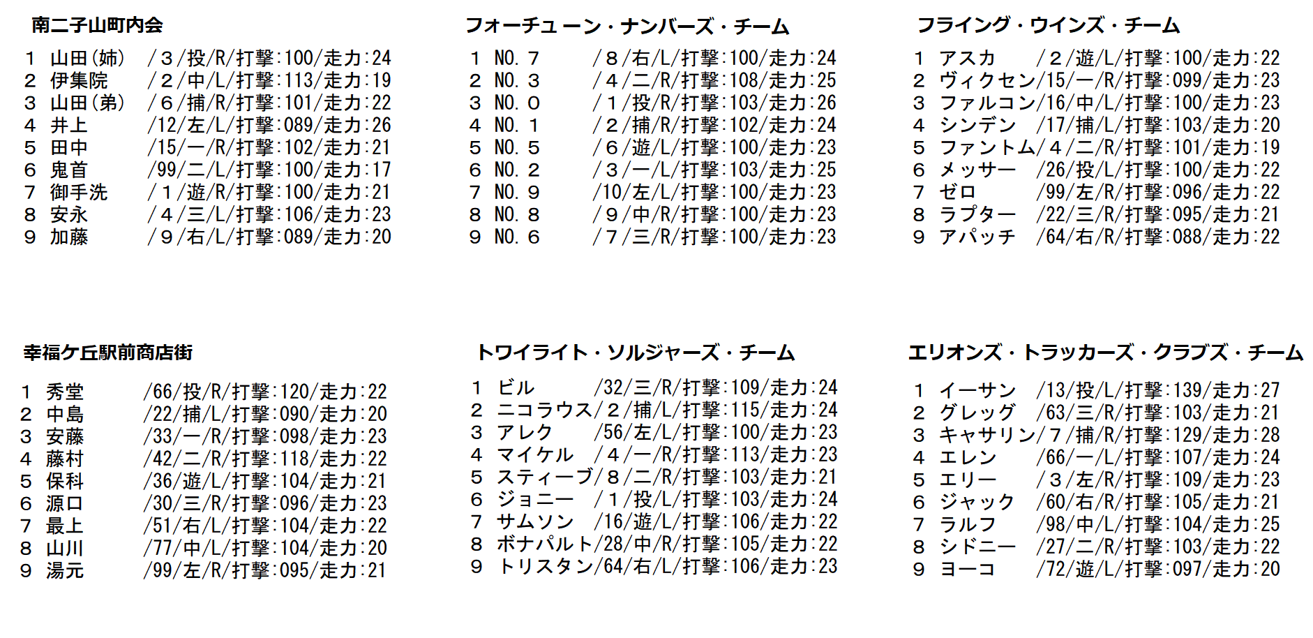 しかし「それ」が、私の空想癖に火をつけてしまいました。私はこれらの絵をもとにアニメ作品として一連のお話を空想し、南二子山町内会やらフォーチューン・ナンバーズやらフライング・ウインズやら幸福ケ丘駅前商店街やらトワイライト・ソルジャーズやらエリオンズ・トラッカーズ・クラブズやらというチーム名の由来を考えました。