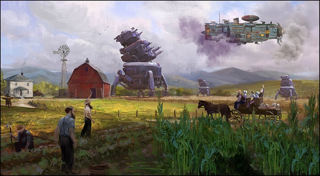 彼の絵を見るといつも「LAST EXILE」(ラスト・エグザイル)というアニメを思い出してしまいます。個人的には、日本におけるスチームパンク系アニメの最高峰だと思ってます。続編が「銀翼のファム」でしたね。
