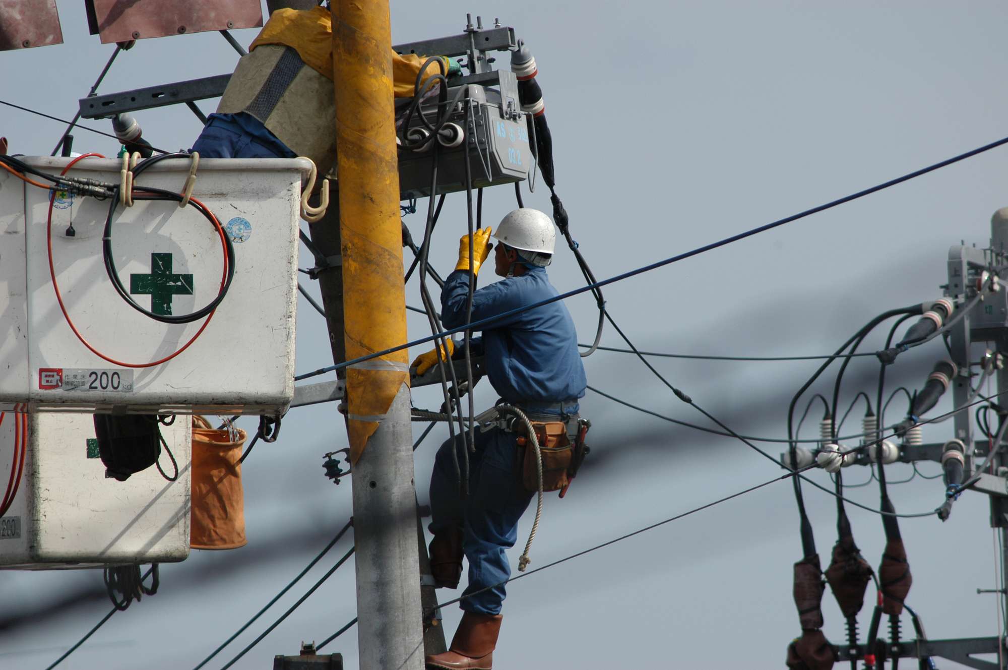 当時の父は九電工の社員(電気工)で、チームを組んで、でかいトラックに乗って移動し、山奥とかに電線を架けにいくような仕事をしてましたから(以下ネットから取ってきた参考写真)、電気工の姿をした父(ヘルメットはかぶっていなかったです)がひとりでこっちに向かって歩いている事象そのものが受け入れられない状況として私には映ったんですね。