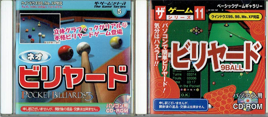 右の「ザ・ゲーム・シリーズ11 ビリヤード 9ball」が初回シリーズのもので、左の「ザ・ゲーム・シリーズ5 ポケット・ビリヤード3」が次のシリーズのものです。