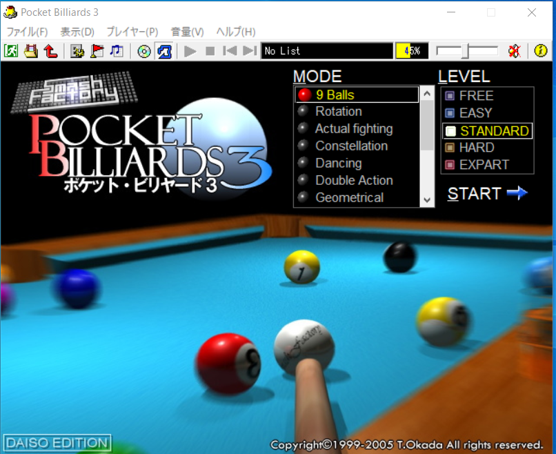 さて、ダイソー・ゲーム・シリーズの第2シーズン作品である『ネオ・ビリヤード』(ポケット・ビリヤード3)ですが、前回も言った通り、とても105円とは思えない内容です。