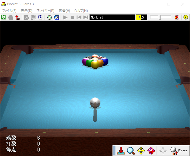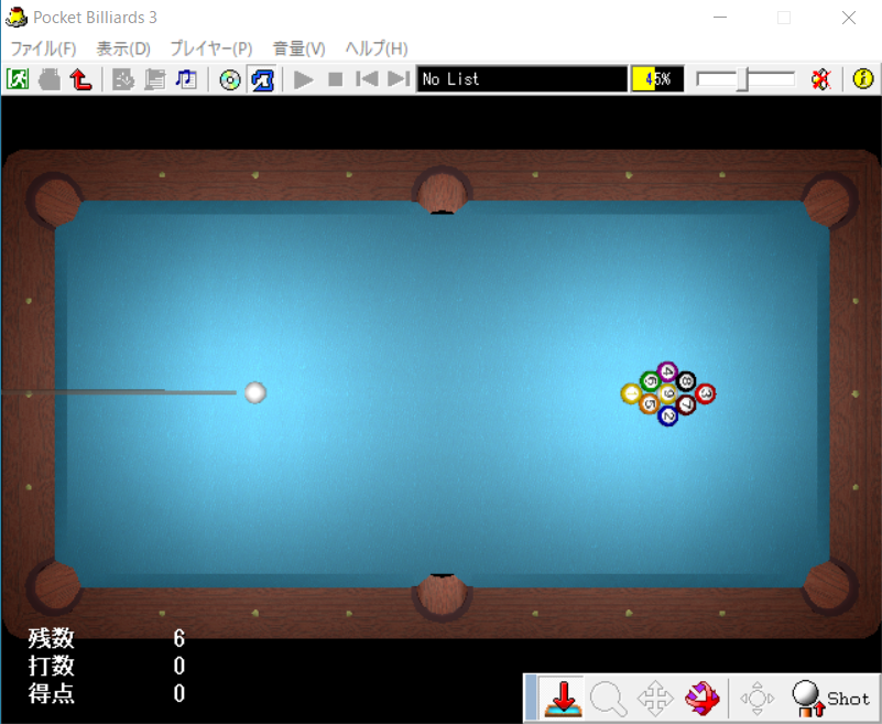 ポケット・ビリヤード3は対戦型のゲームではなく、ソロプレイのみの仕様になっています。むしろ、「とあるシリーズ」のアクセラレーター(一方通行)みたいに、「ベクトル演算」によって(笑)、玉を狙ったポケットに落とし込むシューティングゲーム、じっくりと時間をかけてキューの角度や当てる力を考えながら、決断し実行するので、一種のスナイパーゲームみたいなものだと思った方がいいです。