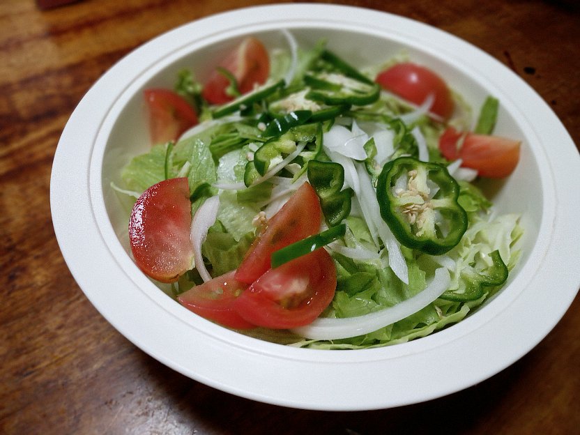 ベジファーストで食事をすると血糖値の上昇がゆるやかになるということなので、これまで野菜を大量に食べることはなかったんですが、できるだけ3食以下の写真のような盛り付けの野菜を摂るようになりました。