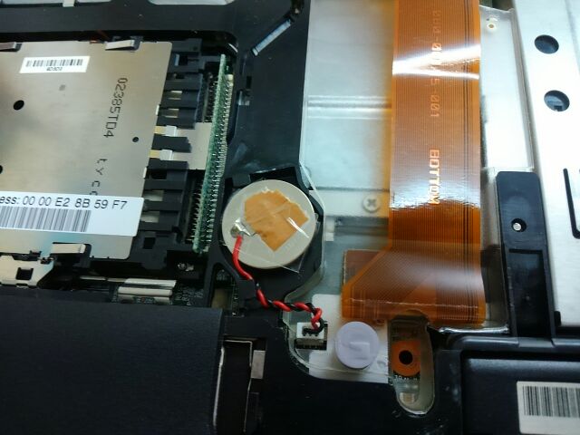 もとのボタン電池の黄色い皮膜を除去して、電池の表と裏にくっついていた平べったい電極部をカットして(はさみで切れるほど薄い)布テープで上下に張り付け、さらに手元にあったセロハンテープを巻いただけなのだが、ちゃんとbios設定後、電源を抜いても、もとにもどらずに稼働するようになった。デスクトップのマザーボードのCMOS電池を取り付ける部分は、もろむき出しで、そこにさくっとはめ込むだけだよね。だから、まあ、シールドもこの程度でいいんじゃないかと安易に考えて取り付けてみた。でもキーボードの裏側は金属になっているので、私みたいな手抜きではなく、電池の表側はちゃんとシールドするに越したことはないと思う(私もあとでもっときれいにやり直そう)。