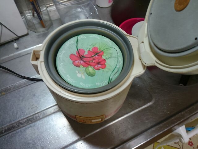 使った炊飯器は30年ほど前に買ってこれまで時々利用してきた3合炊きのミニ炊飯器です。今年に入って、新しいミニ炊飯器を買ったので、「そうだ、この古い炊飯器を黒ニンニク作り専用にしよう」と突然思いついたのが、黒ニンニク作りを始めたきっかけです。