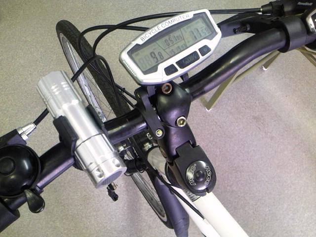 説明書(英語)には自転車のハンドルにサイコンを取り付ける方法について、4通りの方法が載っていた。私の自転車のハンドルは中央部が湾曲しているので、AZ-200SCWの時のような、結束バンドでハンドルに直付け式ではうまくいかなかったので、同梱されていた補助器具を使う方法を用いた(ただしハンドルに巻物をして若干大きめになっている補助器具の直径と合わせなくてはならないので注意。これは同梱されていないので自前で用意しておこう)。