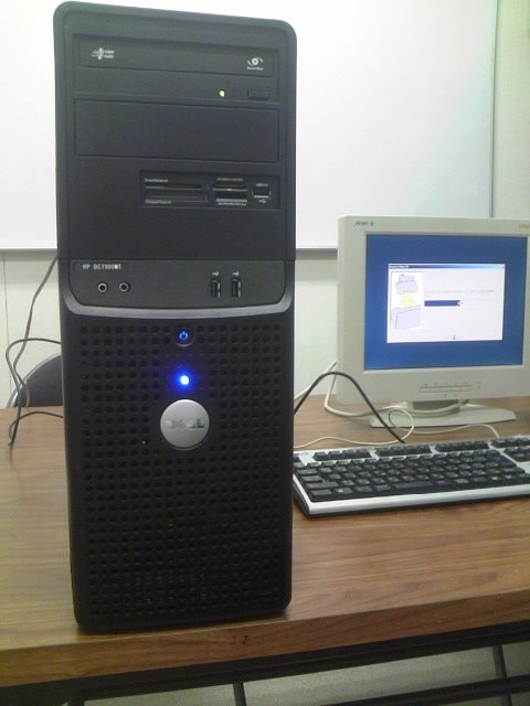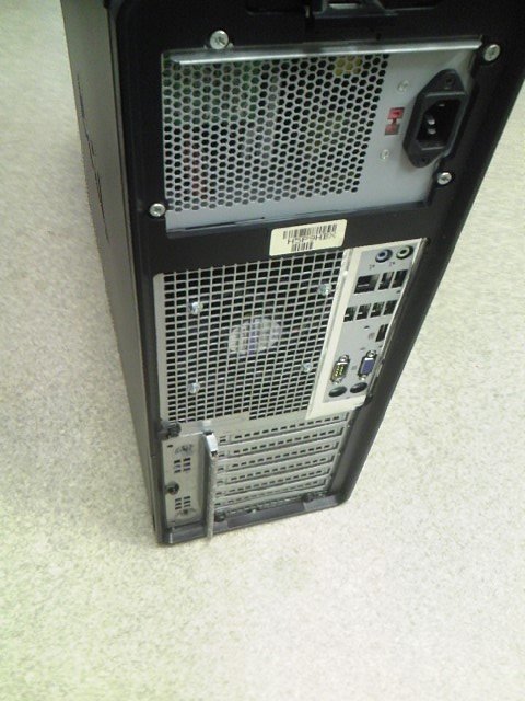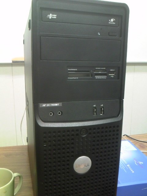 完成した「HP in Dell 」PCのCPUはCore2 Duo E8500、メモリが2G。ハードディスクはOS用に80GBを底面に、それと400GBをもう一台カードリーダーの下、3.5インチのシャドウベイに入れている。