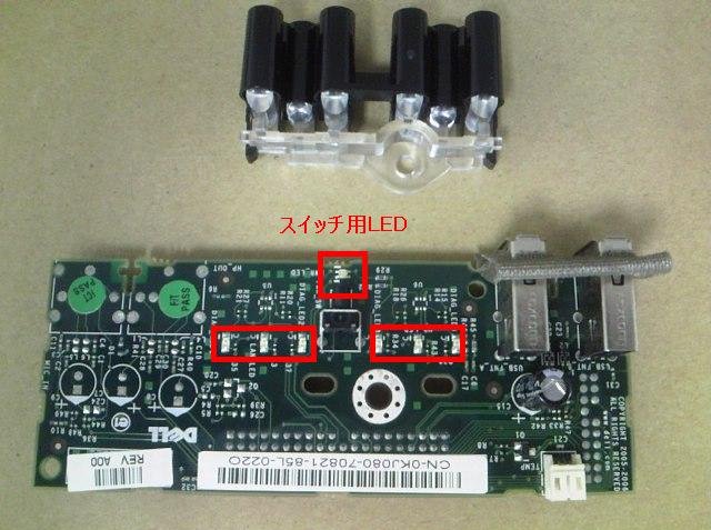 ここでもまた愕然とさせられたのが、Dell特有のスイッチ基板だった。Dellのスイッチとフロントオーディオ・フロントUSBはすべてひとつの基板に集められていた。