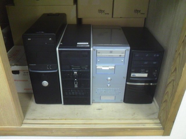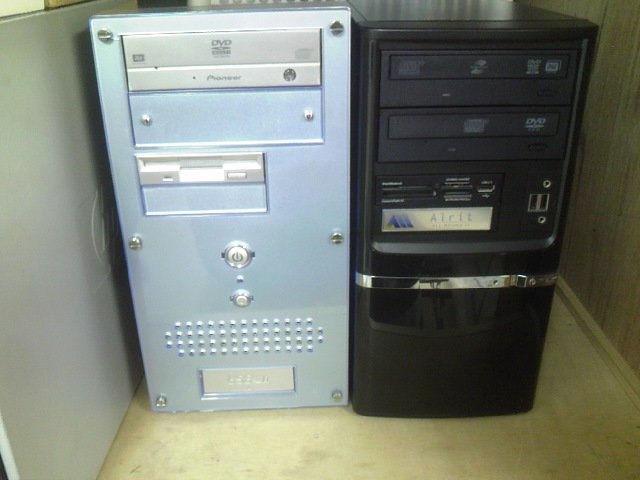 ということで現在、仕上がりを待っている3つのパソコンケースがある。Alritのプレートの貼ってある黒のミニタワーはすでに紹介したことがあるけど、これにはHPのdc7100CMTのマザーボードを入れたり、dc530CMTを入れたり、dx7300MTを入れたりしながら、結局、今は空き箱状態になっている。せっかく半田付けの練習をして、ヘッドフォンジャックとマイクジャックを作ったというのにさ。でも、これからはメーカーもののマザーボードではなく、自作用に売られているマザーボードを手に入れて、さらに技術と知識を得たいと思っているところだ。