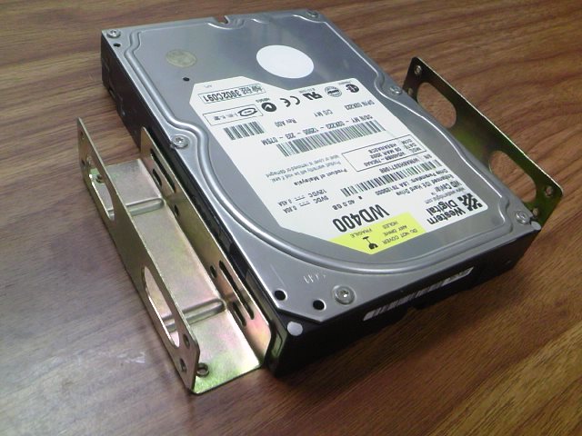 蓋がある状態なら、専用の金具(下写真参照)を用いて、5インチベイにハードディスクを装着すればOKだ。