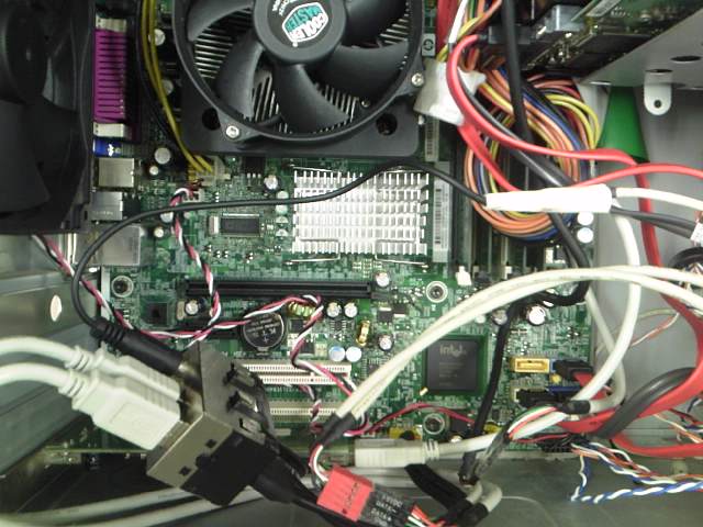 以前、ヤフオクで手に入れたHPのミニタワーdx7300(CPU Core2 Due 2.66GHz)なのだが、フロントパネルとの接合の仕方が緩いのか、時々グーンという箱鳴り現象を起こしていた。手でフロントパネルを抑えるとやむのだが、どうした拍子にかまたグーンとうなりだす。
