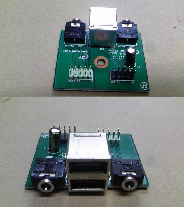 そこでこのサイトの改造記事(「おそまつなフロントオーディオ」)を参考にしてヤフオクでオーディオジャック用部品を調達し(ヘッダーピンは手元にあったガラクタを再利用した)、いよいよ改造(というよりフロントオーディオ基板の完成)に着手した。