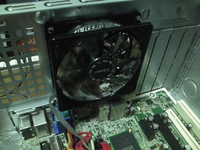 もともとdc7900SFFに付いていたケースファンがうるさすぎるので、使っていないCPUクーラーのファンの部分だけを取り外して使ってみたら、かなり静かになったので、これを使うことにした。