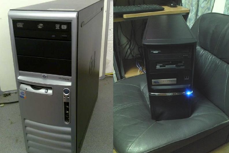 左のdc7900SFFケースから右のdc5750MTケースへ基本的な変形は終了しましたよ。