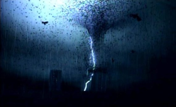 オレは旧BBS(廃止済み)で、その話をもとに、ちょうどその当時DVDで借りて見たロシア映画の「ナイトウォッチ」の画像の話をした。ビルの屋上から立ち上るカラスの群れのような竜巻の映像である。