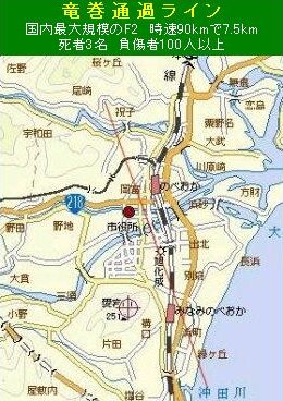 オレは当時、竜巻発生地点に近い緑ヶ丘(地図では右下)に住んでいた。