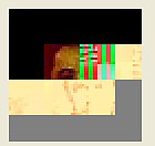 以下の写真は奇妙な画像が私の顔の上にかぶってしまった絵。私はVIXというフリーの画像管理ソフトを使っているんですが、この絵はサムネイル(一覧表示)時にのみ現れて、この写真をクリックして画像を元のサイズに拡大して見るときは、別画像がかぶっていない普通の私の顔写真になってしまうという不思議な事態になっていた時分に「なんじゃこれは?」とプリント・スクリーン・キー→ペイント・ソフトという流れでそのサムネイル画像を切り取って「証拠写真」としたものです。