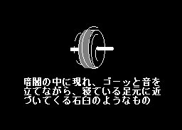 この画像をアップした時期に、自分が高校生の頃、体験していた金縛りで、よく足元に現れてきていた、闇の向こう側からせまってくる回転する石盤の像もアップした。それが以下のイメージ図である。(思い出してくれましたか。一部読者の皆さん。)