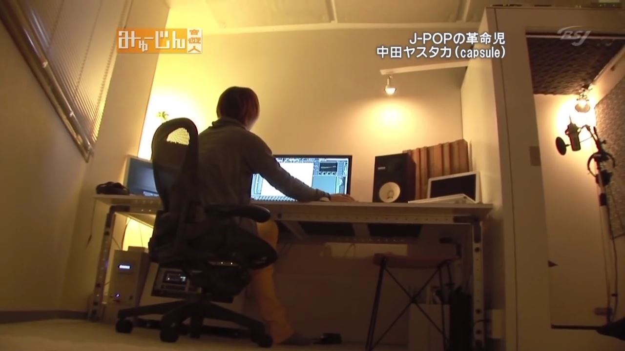 Perfumeの音楽を担当した中田ヤスタカの仕事部屋は、シンセで一世を風靡した小室哲哉の仕事部屋とはまったく違っていた。以下の写真はYouTubeからとってきたもの。