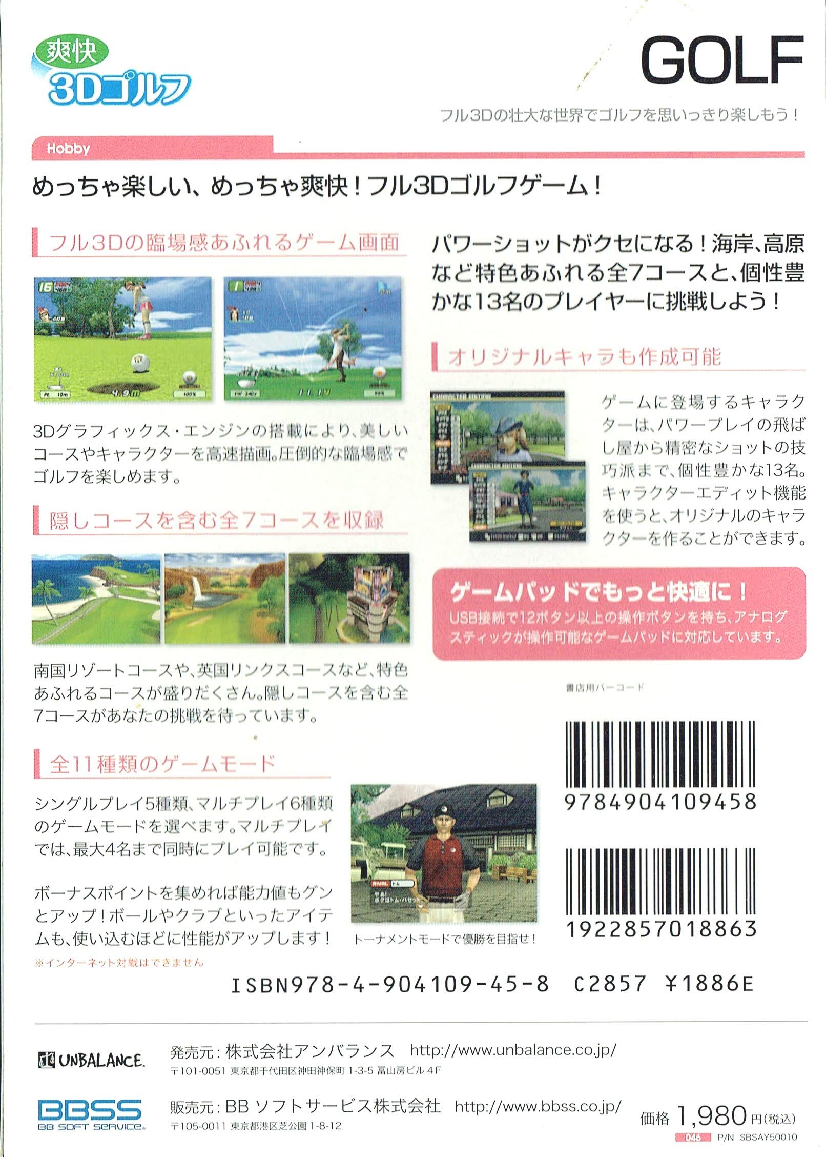 「爽快3Dゴルフ」に印刷されているゲームの説明文には「個性豊かな13名のプレイヤーに挑戦しよう」と書いてあります。