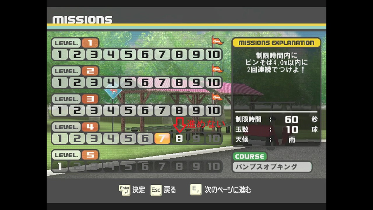 ①いきなりトーナメント戦に挑むのはあまりお勧めしない。ストローク・モードで☆(バーディ)を稼ぎ、イクイップメント(能力を付加してくれる道具類が利用できるようになる)の数値を先に上げておく。ちなみに私は55をイクイップメントの基準値にしてました。