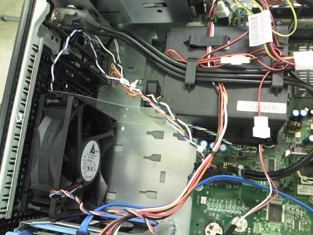 同時に吸気ファンもDellのSC430に付いていた9cmファンから12cmファンの方に交換した。これは改造初期に一度試して回転音が9cmファンより大きいのですぐに取り外して保管していたものだ。この12cmファンはもともとはCPUファンとして使われていたものだけど、風量が巨大なので夏場はこっちの方が効果的じゃないかと思い直して、交換することにした。